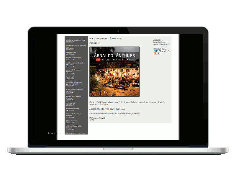 Músico Arnaldo Antunes - Desenvolvimento de website em parceria com a Refazenda
